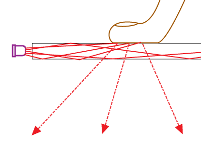 The screen uses FTIR (short for Frustrated Total Internal Reflection) setup. It involves three vital components: a sheet of transparent acrylic, a chain of infrared LEDs, and a camera with an IR filter. The LEDs are arranged around the outside of the sheet of acrylic so that they shine directly into the thin side surfaces. The net effect of the setup described above is a sheet of acrylic full of internally reflecting infrared light. When a finger is pressed against the acrylic, it causes some of the light to be reflected down, through the acrylic and into the cabinet, where it is detected by the webcam.