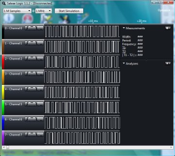 The most of the magic on this product is in the PC software side. You can download the software from Saleae web page and try it yourself in demo mode. On the good side the software is cross-platform: Windows, Linux and Mac. I like products that work on Linux as well, although currently I have only used the software only on Windows (XP and Vista).