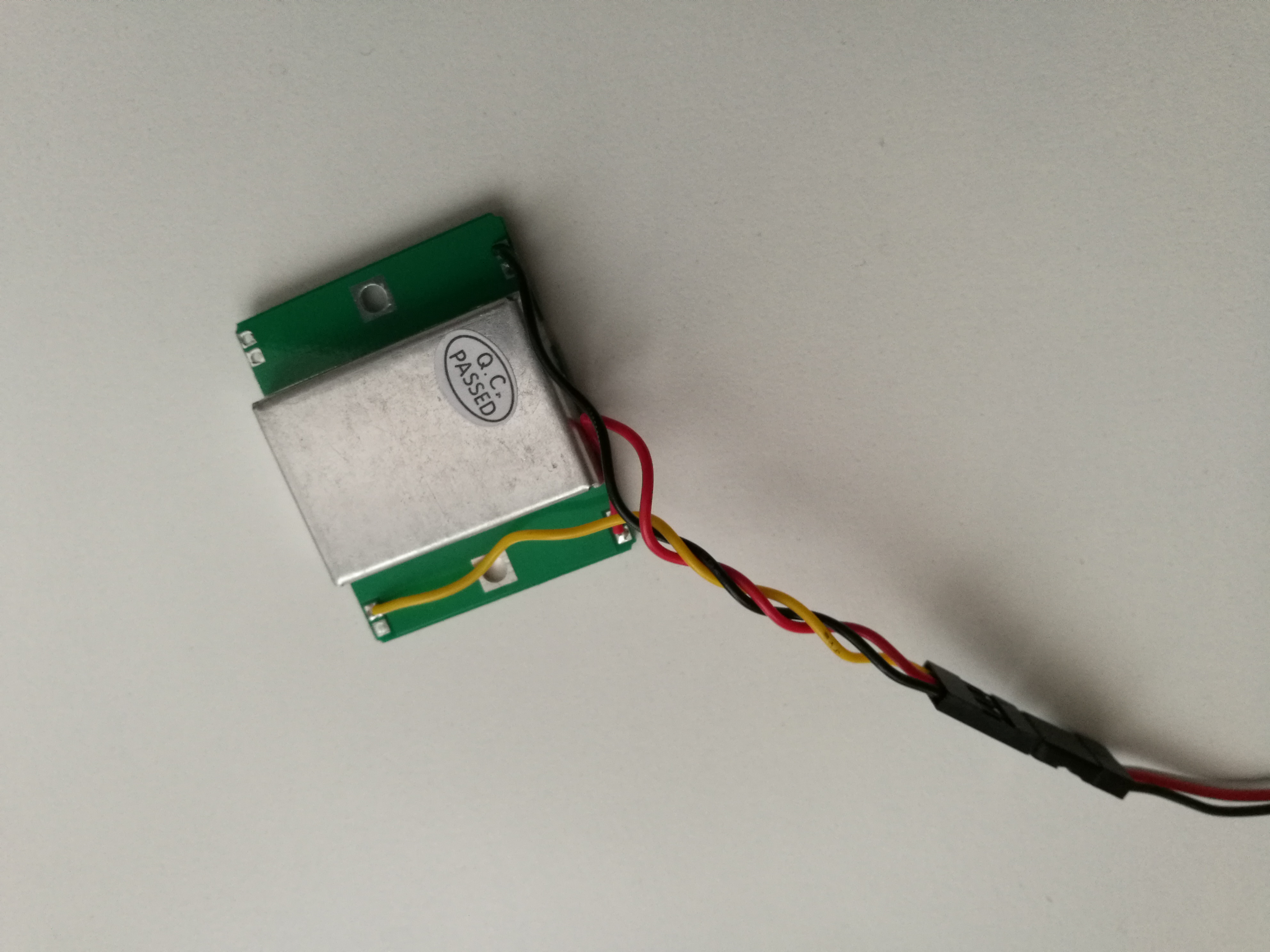 Here is some pictures of the module (taken after I have soldered wires to module). Here is the side where you can see transmitter and receive antennas: