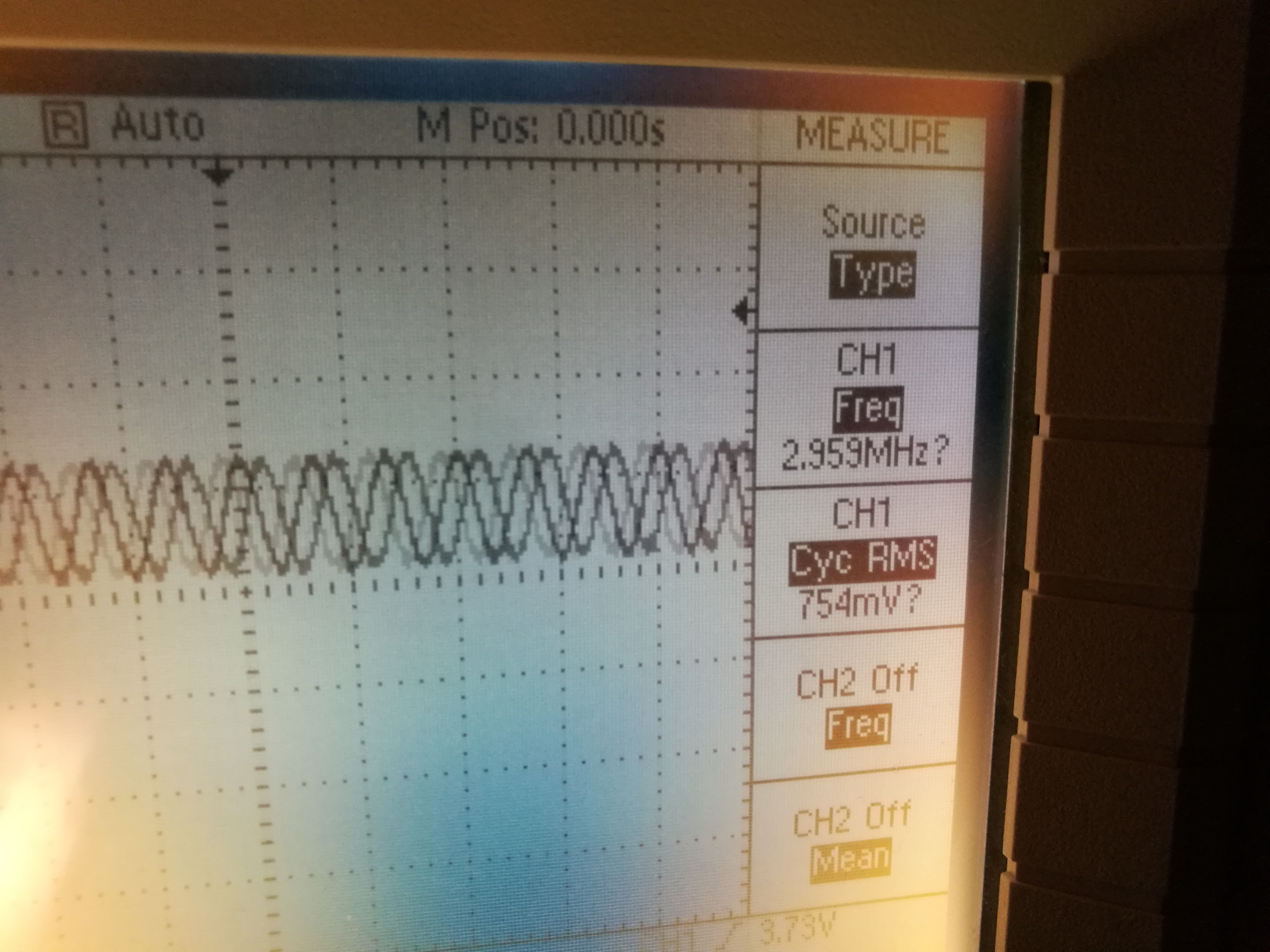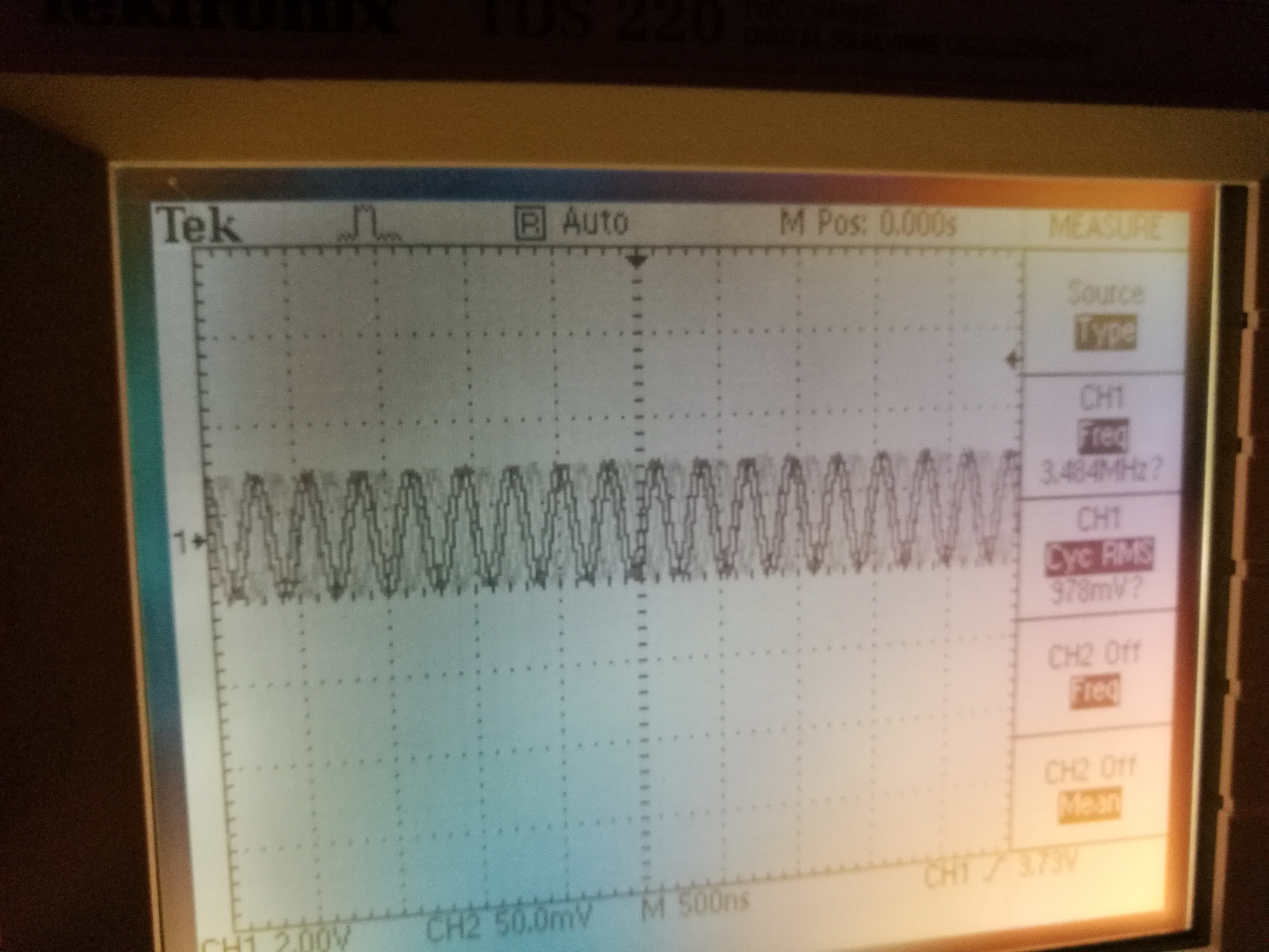 The original documentation talks about 700 kHz operating frequency (if I undersand that 700k frequency right). The real frequency seems to be something quite different according to my oscilloscope: around 3.5 MHz. This was measured with normal oscilloscope probe aroudn 30 cm away from the coil on the table (I did not want to put it near the high voltage source that can damage my oscilloscope).