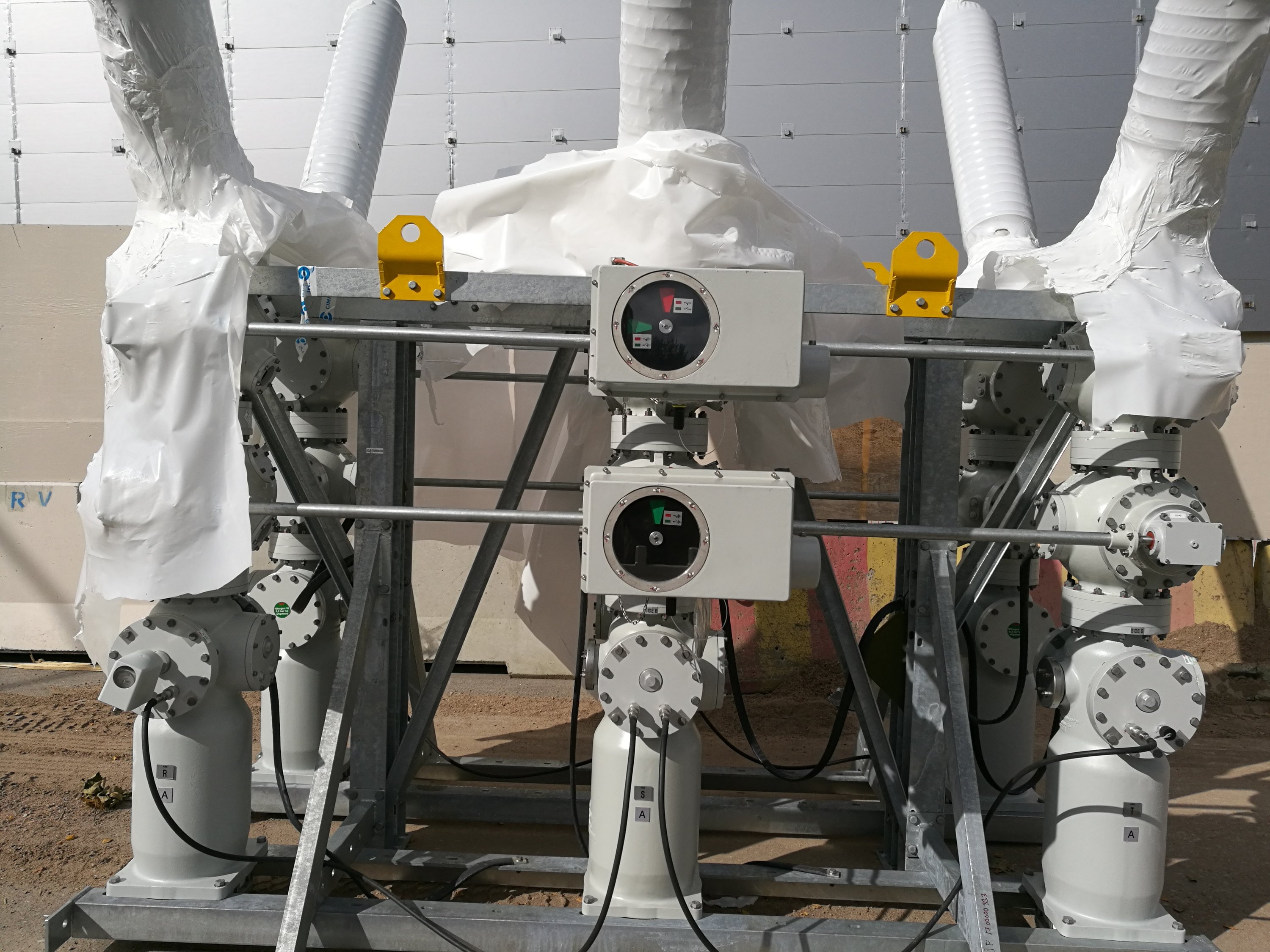 Here is picture of huge electrical switching device I saw today. I believe it is going to be installed inside or next to a big data center. I belive that this is made for controlling several megawatts of three phase 110 kV power. It seems to be made by ABB.