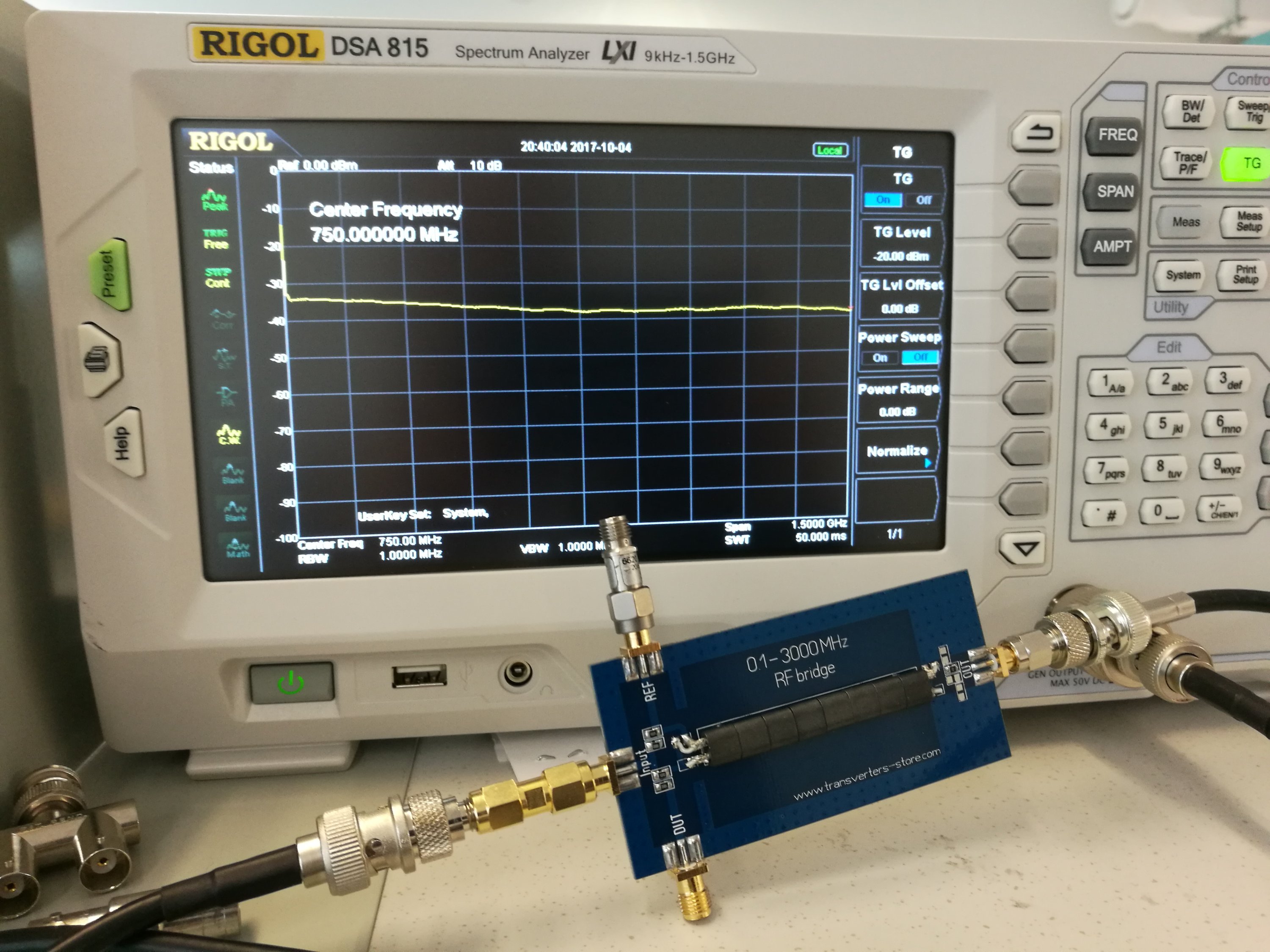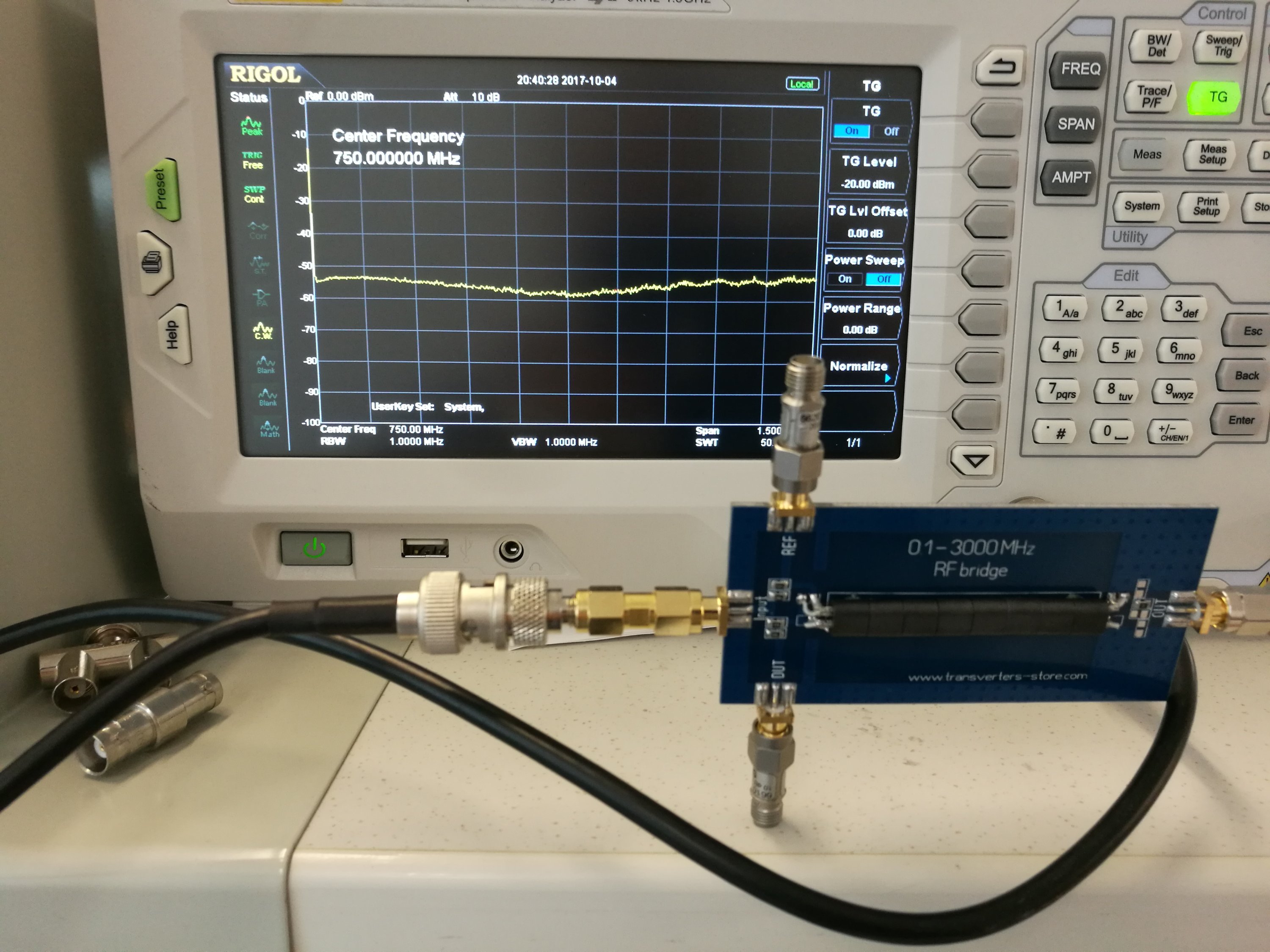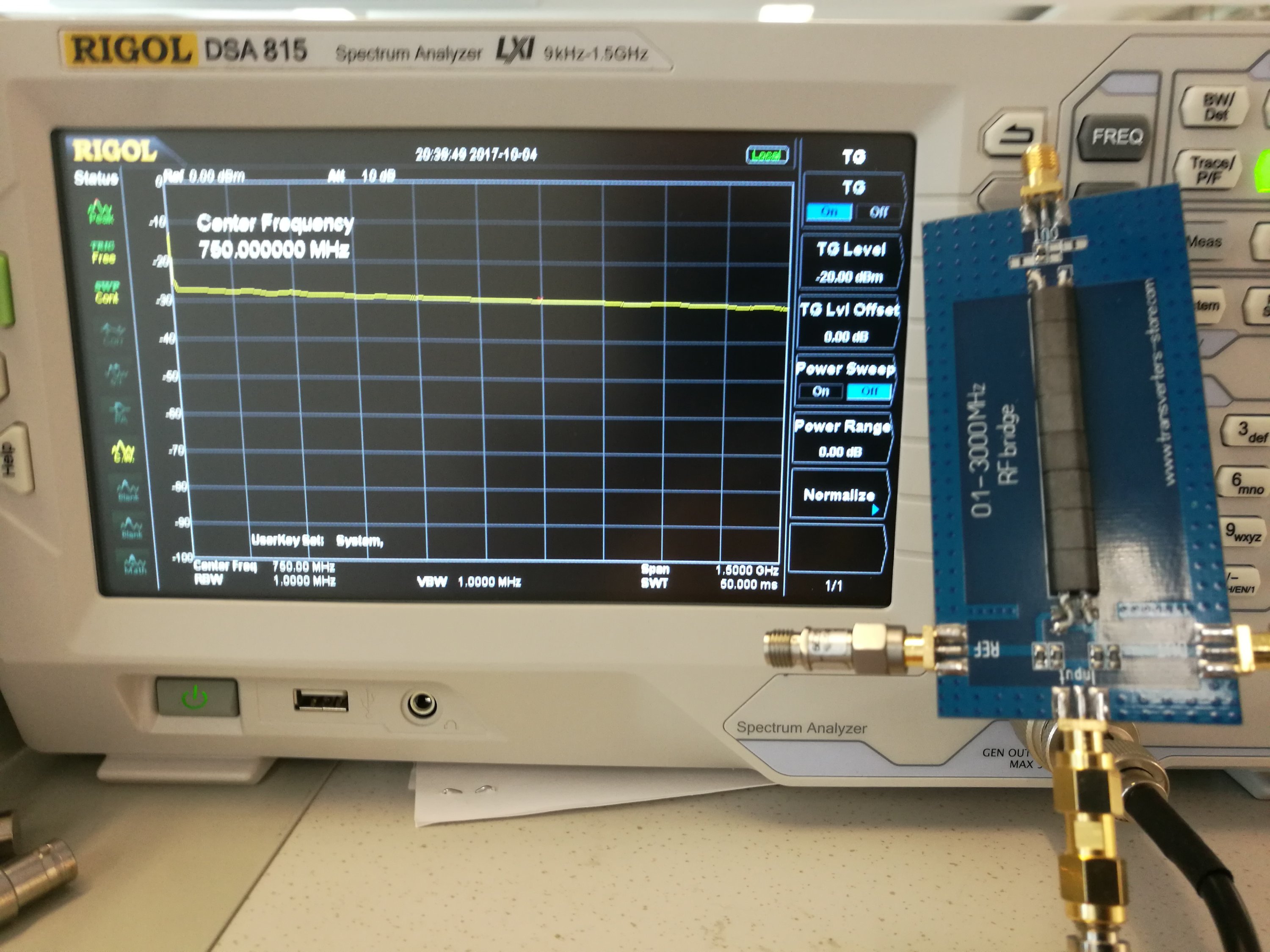 Here are some measurements on RF bridge with Rigol spectrum analyzer tracking generator up to 1.5 GHz. Those small grey adapters on the SMA connectors you see on the pictures are 10dB and 20dB 50 ohms attenuators that I use as close to 50 ohm terminator in this quick measurement…