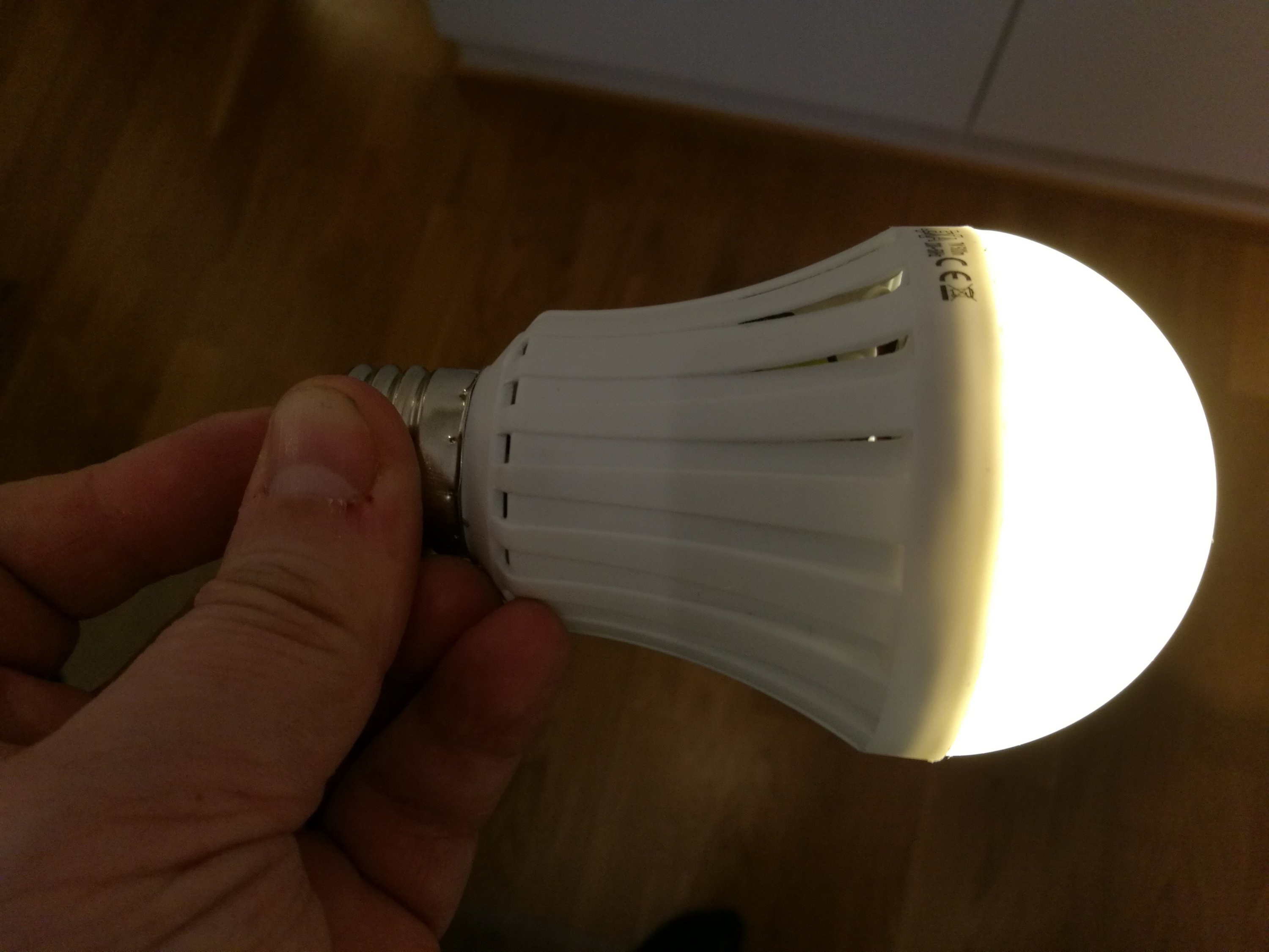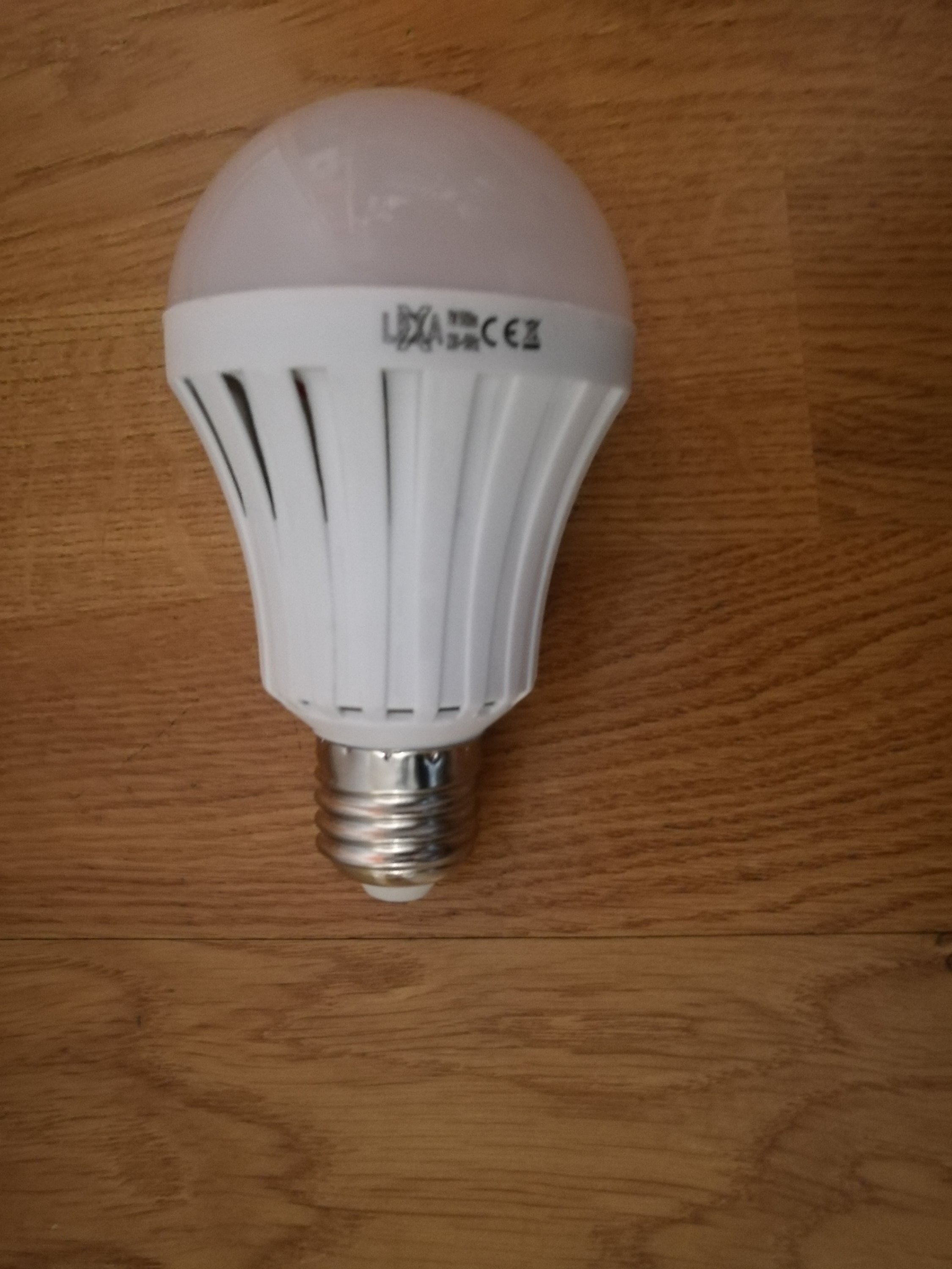 I got several LEXXA 7W LED-VARAVALO bulbs in hoping to replace some aging LED light bulbs with new ones that have a bonus feature: They have an internal battery that allows them to output light even when the mains power is turned off. Those were available cheaply from Finnish shop Motonet (bulbs with pretty similar look and similar features are also in Amazon).