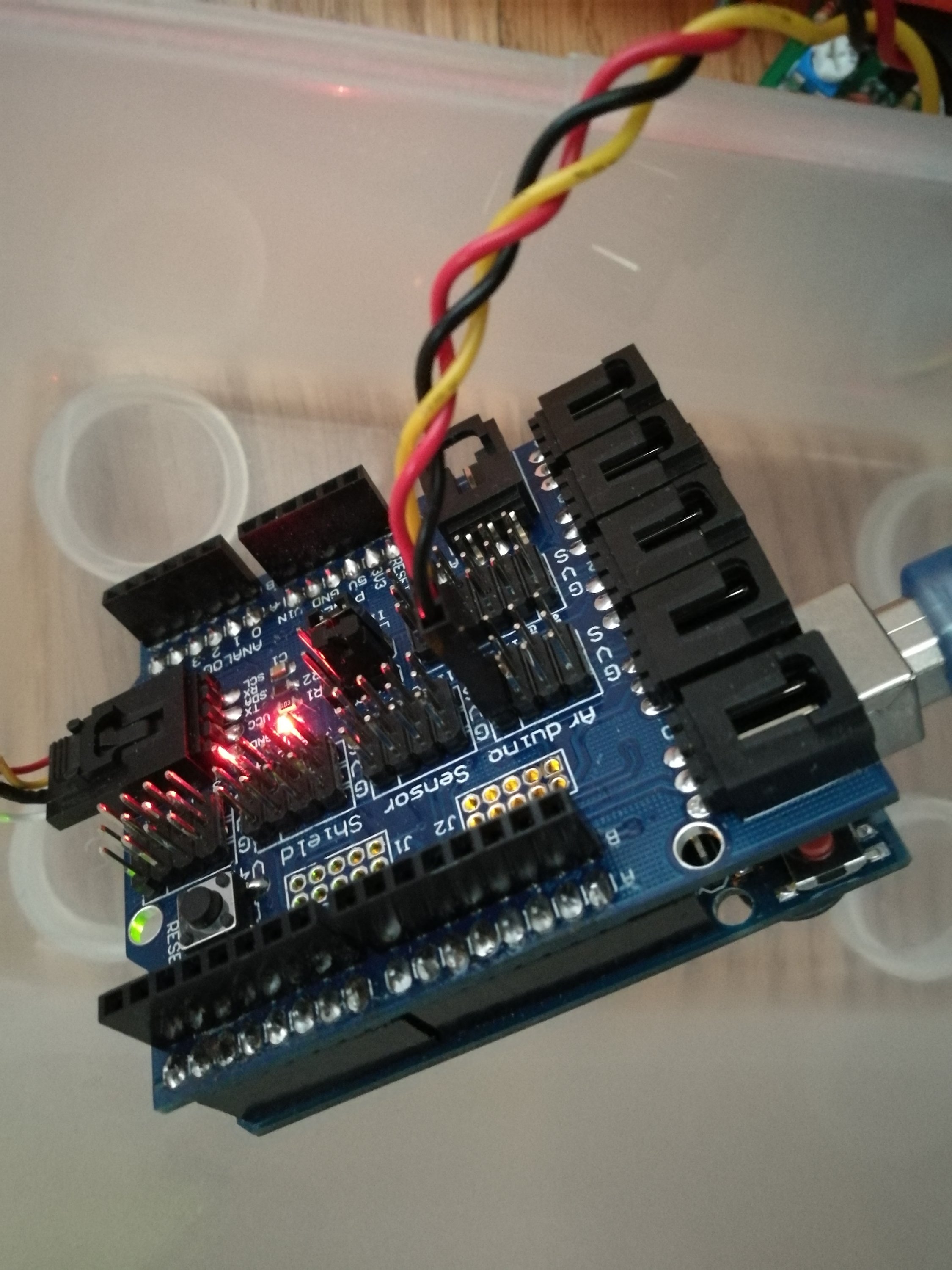 The main processing unit is Arduino Uno + sensor shield on top of it. The display is cheap LCD display that connects to I2C. The sensor is metal detector kit I tested and converted to Arduino sensor in Metal detector kit converted to Arduino sensor article.
