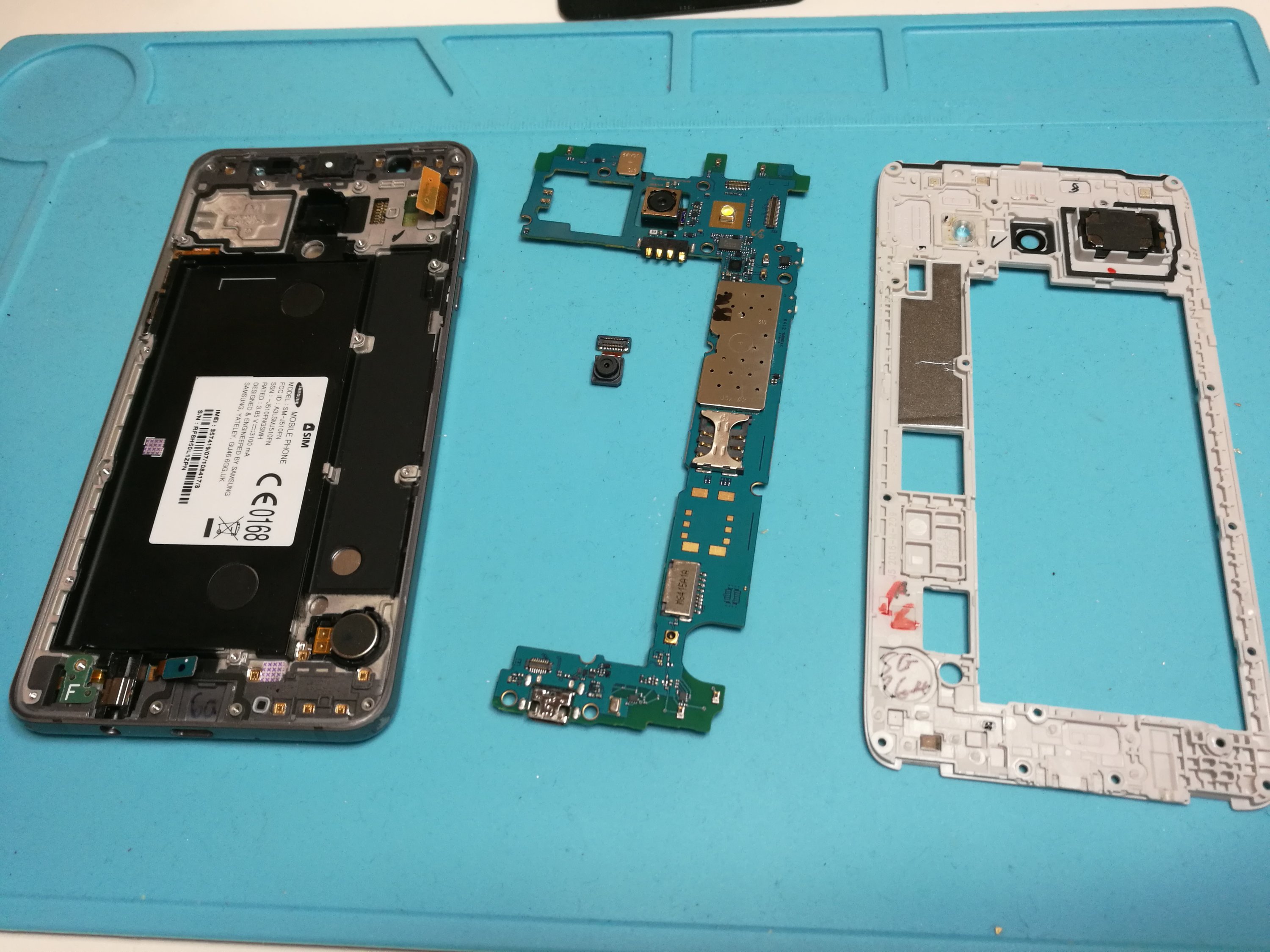 Here is teardown of a broken Samsung J5 smart phone (SM-J510FN from 2016).