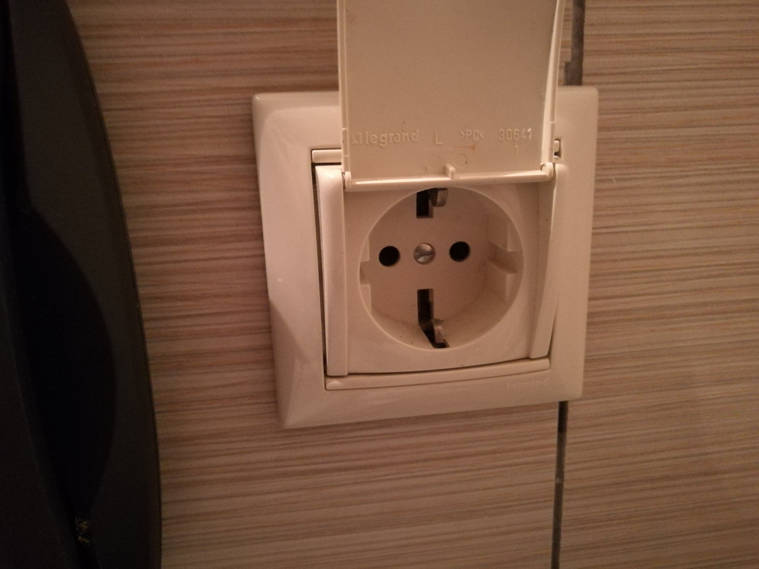 This is interesting wiring at hotel – proper according to code or not? There is “euro” extension cord ouput wired directly to end of flexible wire coming from wall.