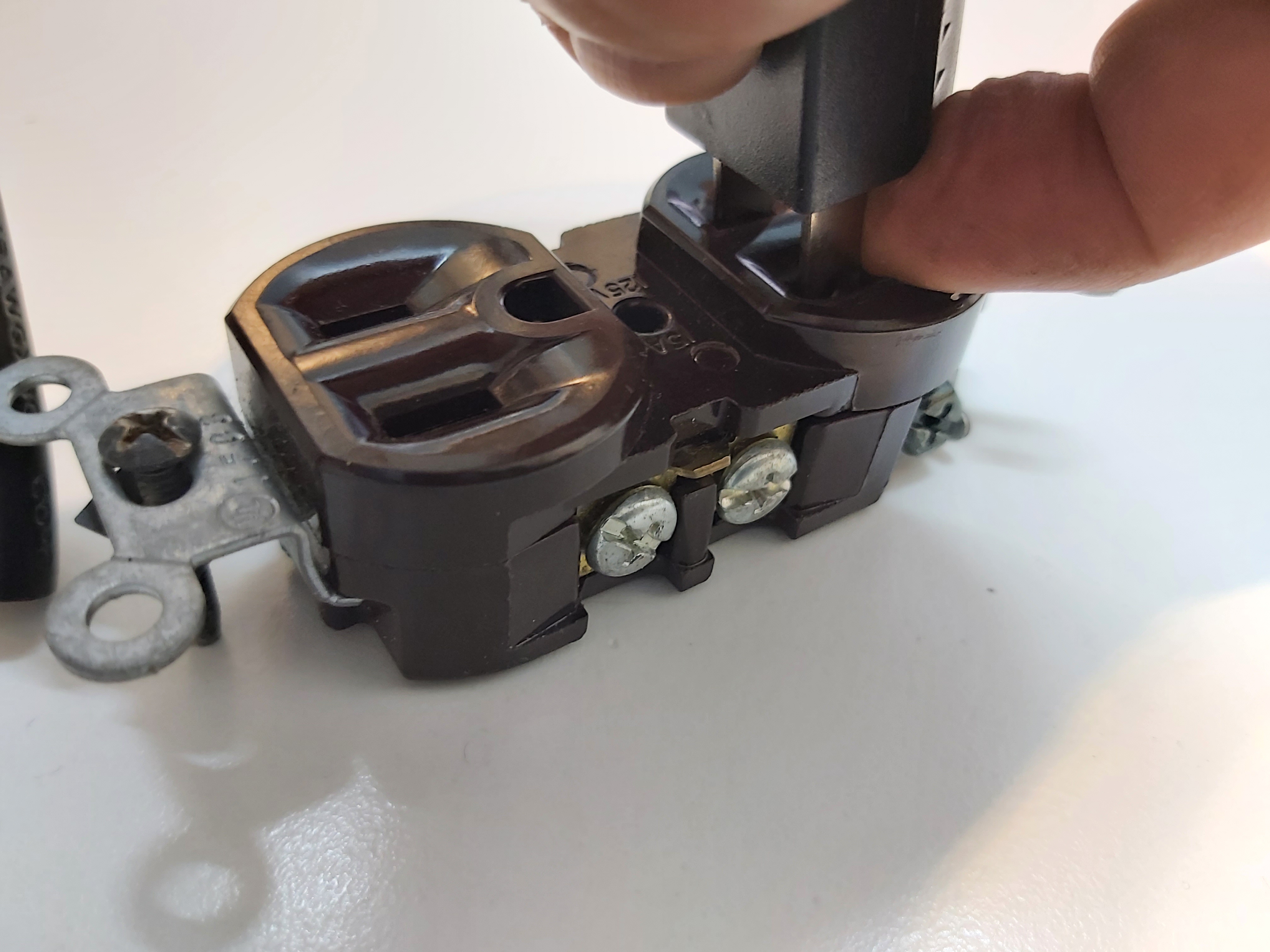 Tamper-resistant receptacles work by having a plastic shutter in front of where the plug gets inserted, which is only moved out of place if objects are placed into both slots of the receptacle TR-rated outlets feature “TR” engraved into the outlet faceplate, typically between the two prongs. The shutters remain closed until the proper plug is inserted. This ensures that items like knives, forks, or loose jewelry are not able to access plugs, thus reducing electrical shock injury.