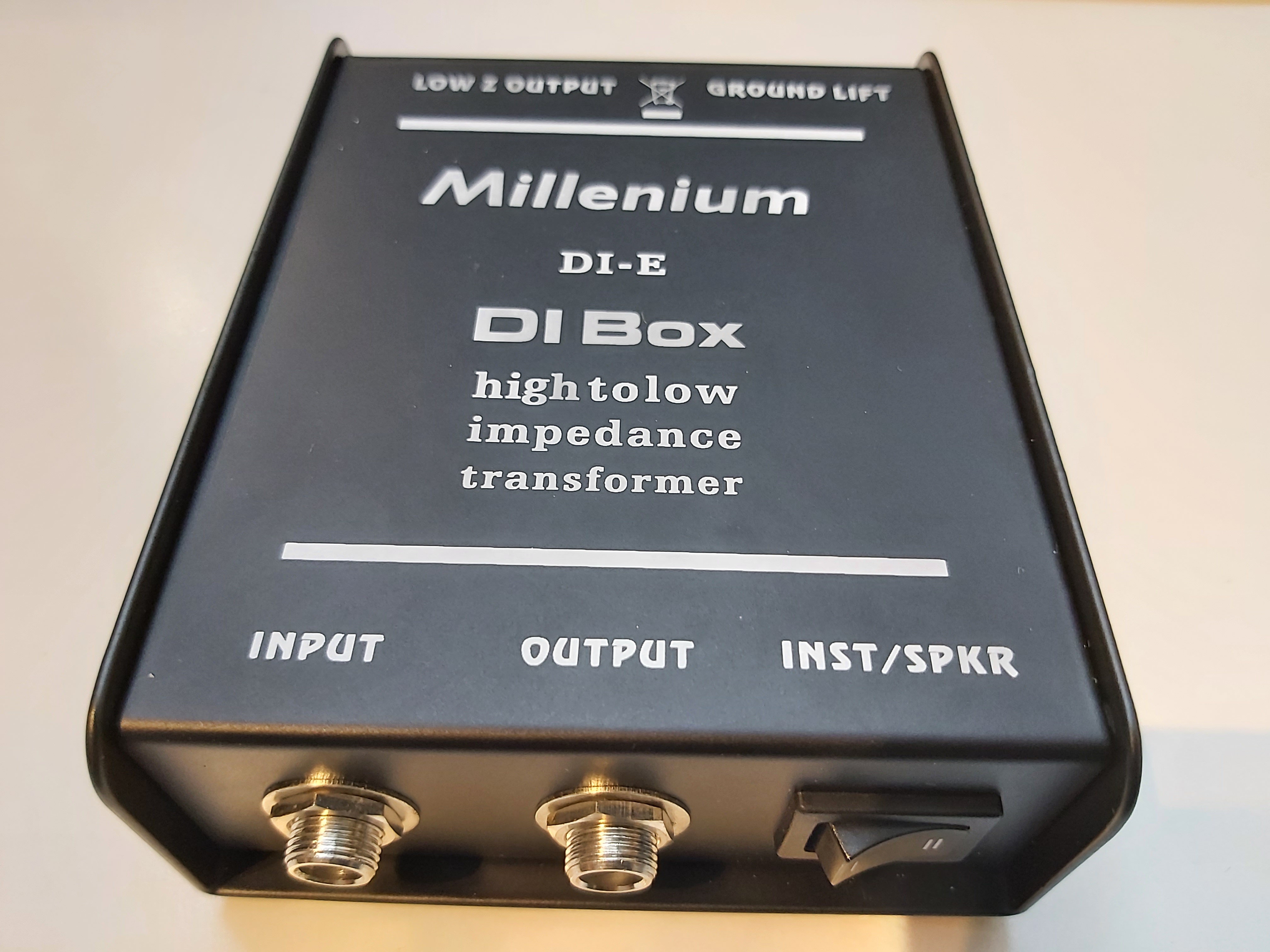 Millenium DI-E is a DI Box. It is pretty much the cheapest (around 12 Euros) DI box you can find that still does it’s job acceptably. The unit is passive and has ground and ground lift. IT allows you to select to use the input with either an instrument or speaker level signal.