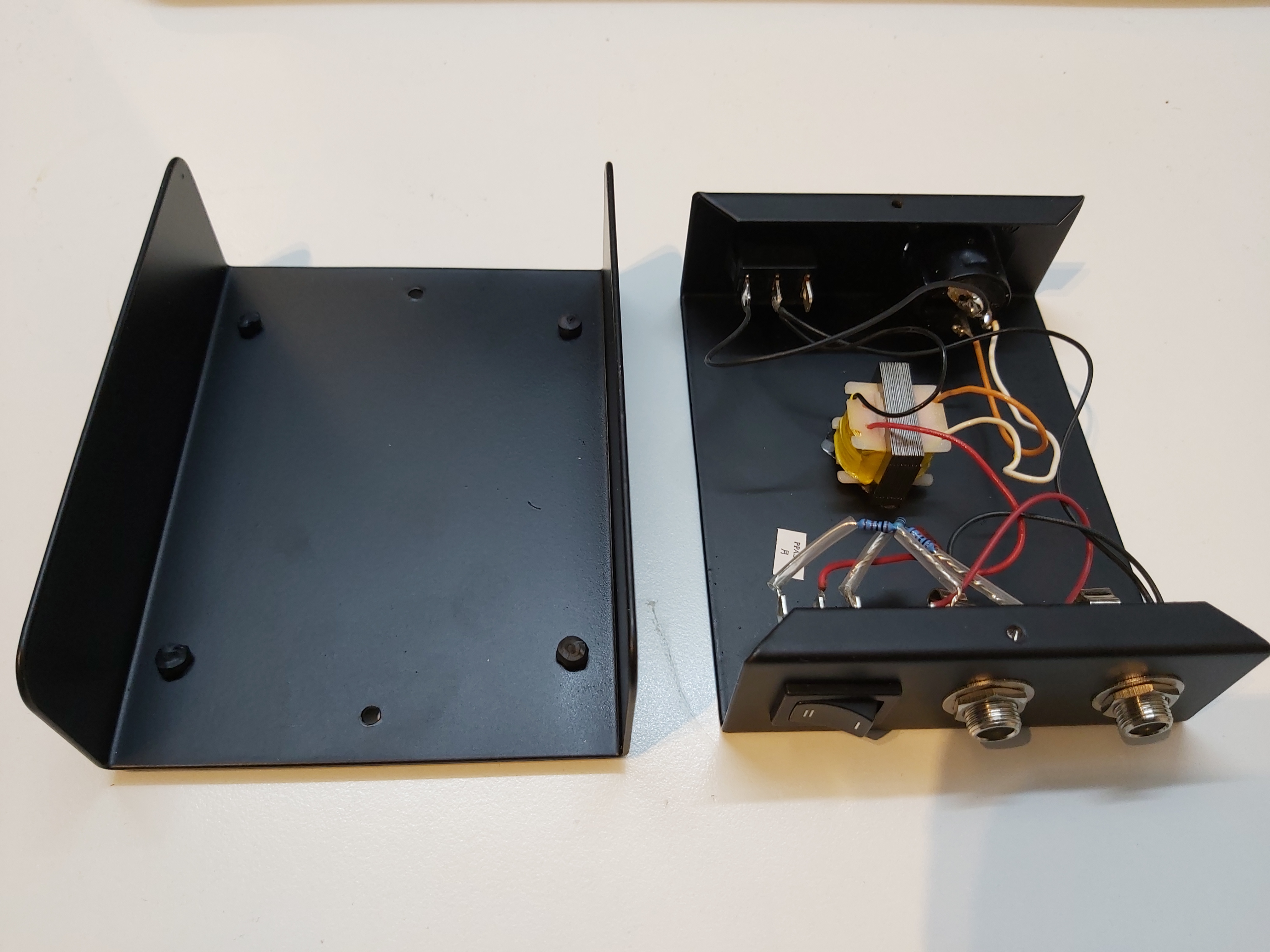 The box has two switches: ground lift and a switch to toggle between instrument/linelevel or speaker level input. The box supports parallel connection to the speaker of a guitar amp.