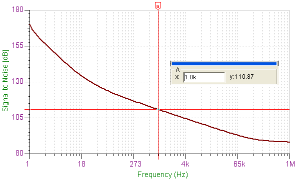 An impressive result of 110dB S/n at 1KHz is acheived. In practise this figure will be lower and determined by the quality of the microphone used.
